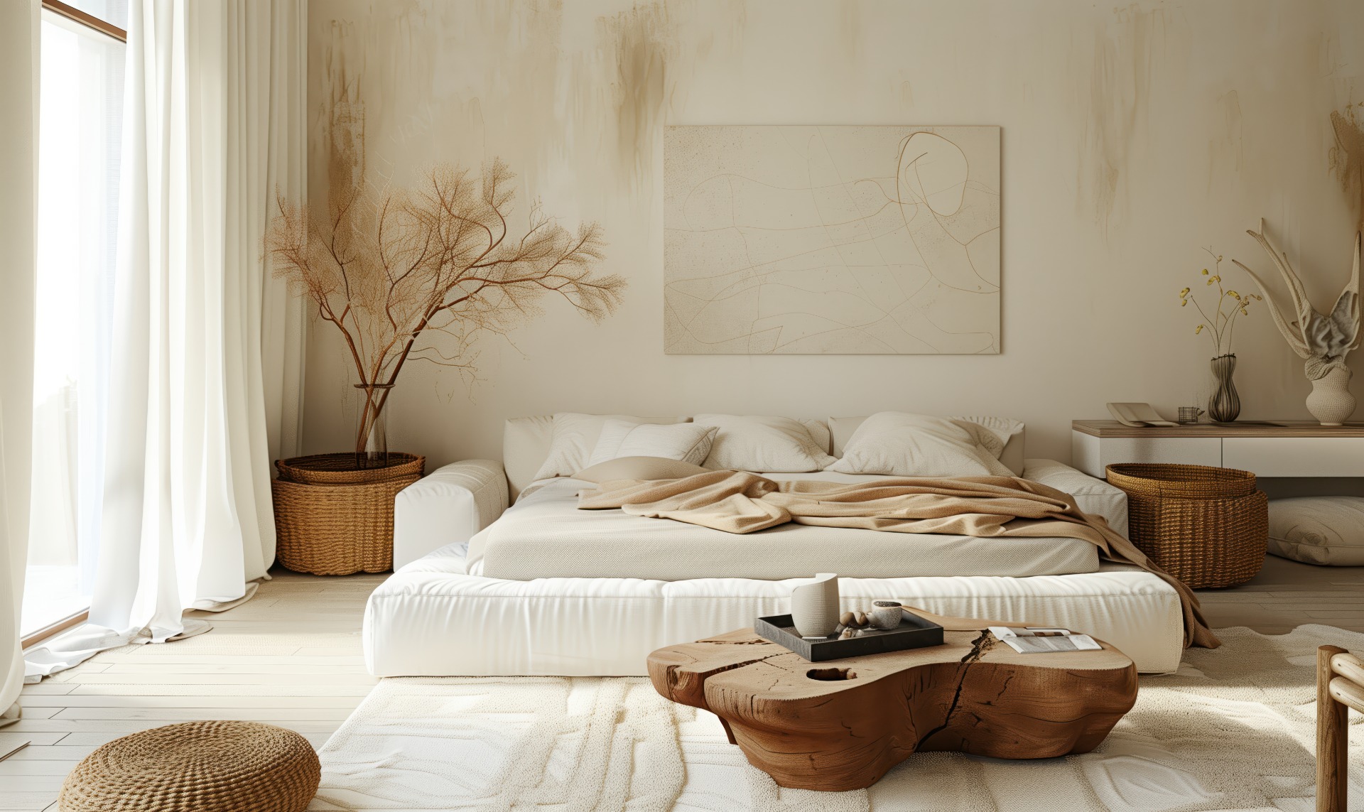 Autentické materiály definují charakter prostoru. Dřevo, kámen a jemné textury vytvářejí vizuální hloubku a přinášejí do interiéru hmatovou kvalitu, která působí nadčasově a kultivovaně.